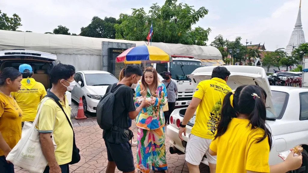 ชีวิตประจำวันซึ่งในการจัดกิจกรรมครั้งนี้มีผู้เข้าร่วมกิจกรรมมากมายรวมทั้งคุณ พรทิพย์ พบอภิญญา และ คุณ กวิน ชาตะวณิช ได้จัดอาหารและน้ำดื่มมาเข้าร่วมกิจกรรมในครั้งนี้ด้วย ณ บริเวณ ลานอเนกประสงค์ด้านหลังพระแม่ธรณีบีบมวยผม แขวงพระบรมมหาราชวัง เขตพระนคร กทม. เมื่อวันจันทร์ที่ 13 ตุลาคม 2568