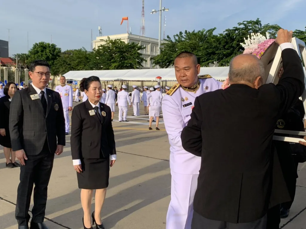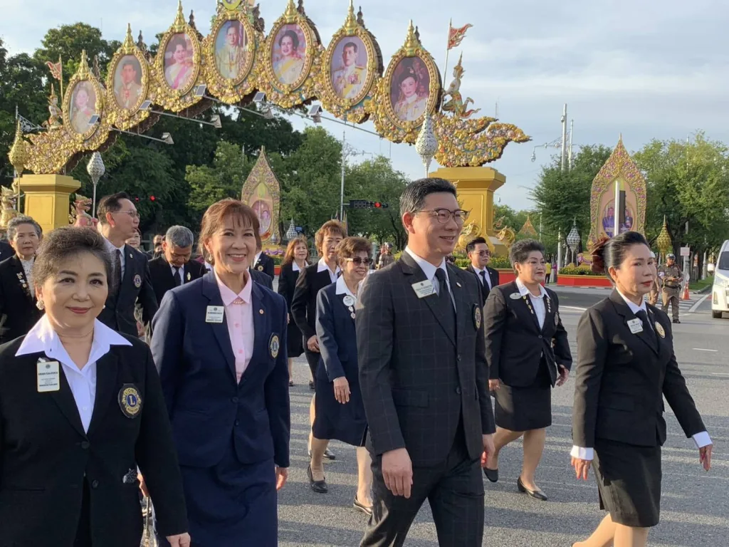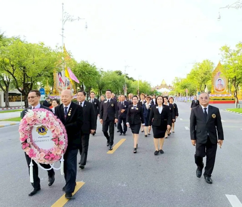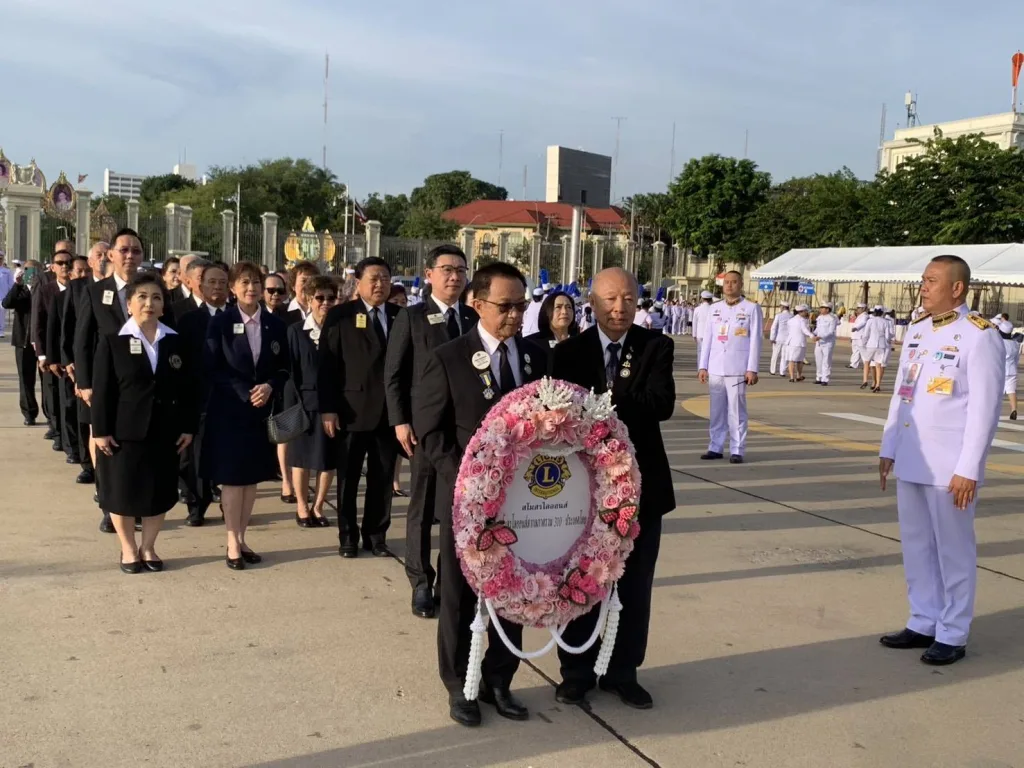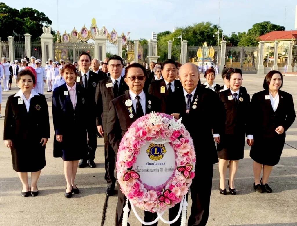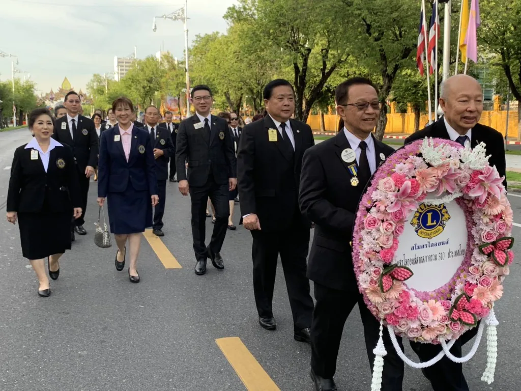 ขวัญเจริญทรัพย์ ประธานฝ่ายจัดงานกิจกรรม เทิดพระเกียรติสถาบันพระมหากษัตริย์ ไลออนส์ภาครวม 310 ประเทศไทย,ไลออน ดร.พรทิพย์ วัฒนผลมงคล รองผู้ว่าการภาค 310 A 2 คนที่1,ไลออน แสงจันทร์ เอี่ยมสระศรี รองผู้ว่าการภาค 31 D คนที่ 2,ไลออน ดร.วิมล มาลย์สวัสดี รองผู้ว่าการภาค E คนที่ 2,ไลออน รุ่งนภา เตชะอาภรณ์ชัย อดีตผู้ว่าการภาค 310 A1,ไลออน อัครภณ ศิรนรากูล อตีดผู้ว่าการภาค 310A2,ไลออนไพศาล เพชรโรจน์ อดีตผู้ว่าการภาค 310 Eและคณะกรรมการภาค นายกสโมสรไลออนส์ในภาคต่างๆและสมาชิกฯร่วมเดินเทิดพระเกียรติ วางพวงมาลา พระบรมราชานุสาวรีย์ พระบาทสมเด็จพระจุลจอมเกล้าเจ้าอยู่หัว